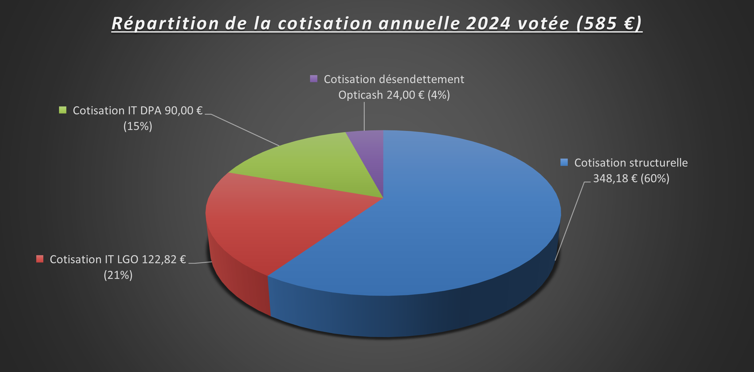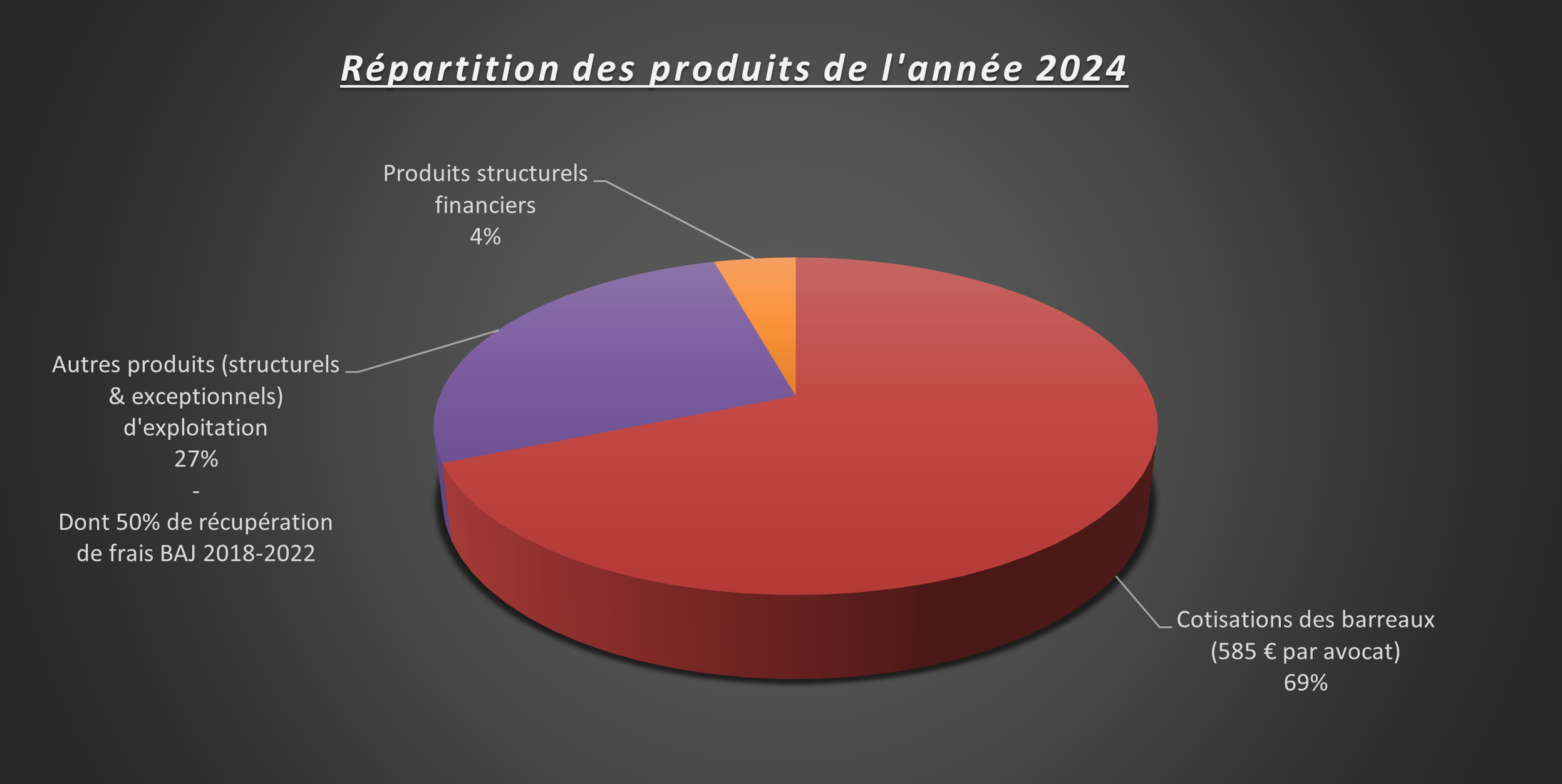 • Le montant global des cotisations 2024, à savoir 585 € par avocatpour un montant global de 4.132.755,00 € a été utilisé comme suit :