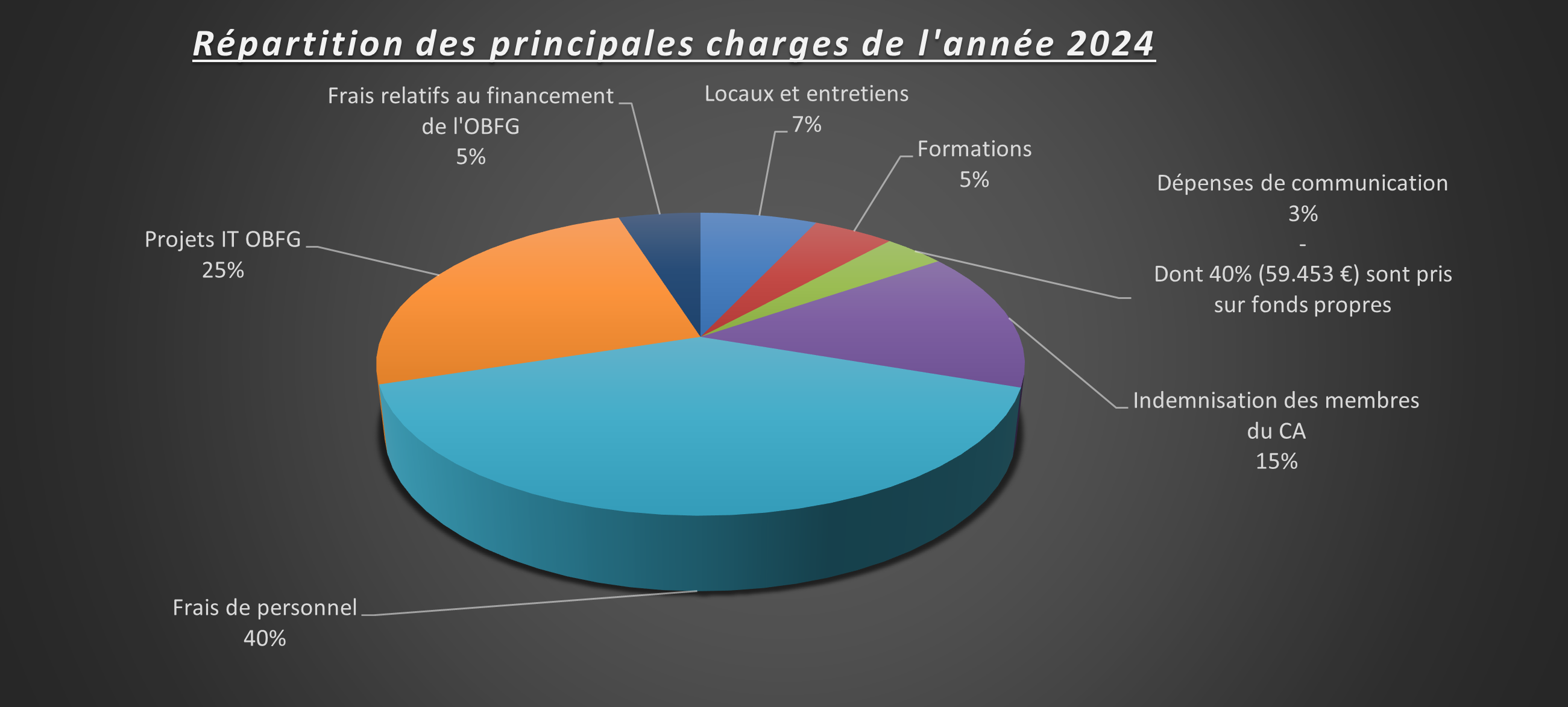 • Les frais de rémunérations du personnel de l’O.B.F.G. sont en augmentation, à la suite de l’indexation intervenue en 2024 (1.598.075,80 € en 2024 vs 1.521.662,82 € en 2023).